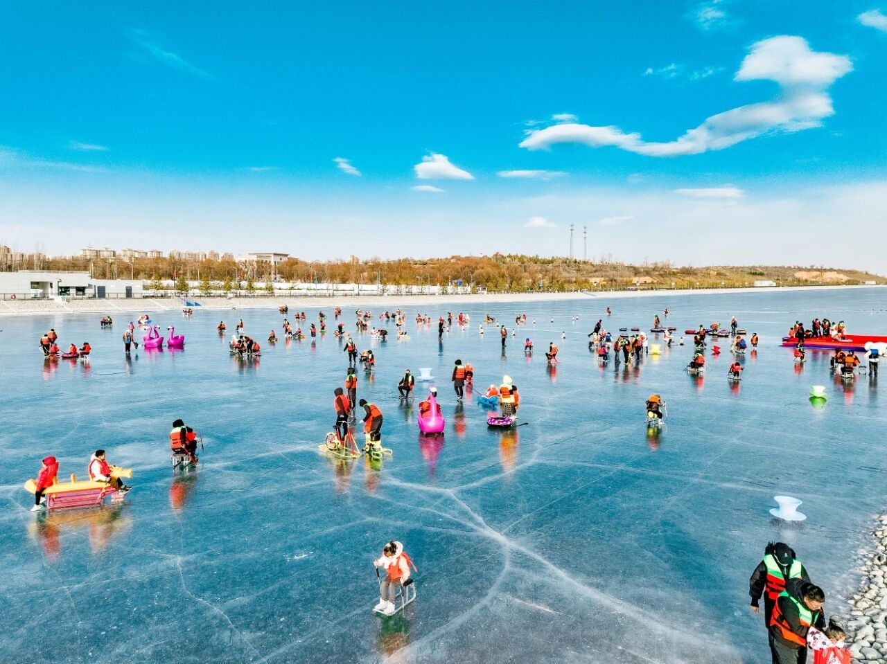 榆林水上運動中心則承擔(dān)速度滑冰項目,張偉介紹,冰面寬138米,戶外滑冰場地可容納上萬人,提供冰車、騎馬等豐富體驗,已成為冰雪賽事與大眾參與的重要載體。圍繞賽事保障,中心還規(guī)劃推進(jìn)“太空艙營地”項目,構(gòu)建集住宿、休閑、康養(yǎng)于一體的服務(wù)網(wǎng)絡(luò),全面提升冰雪旅游接待能力。