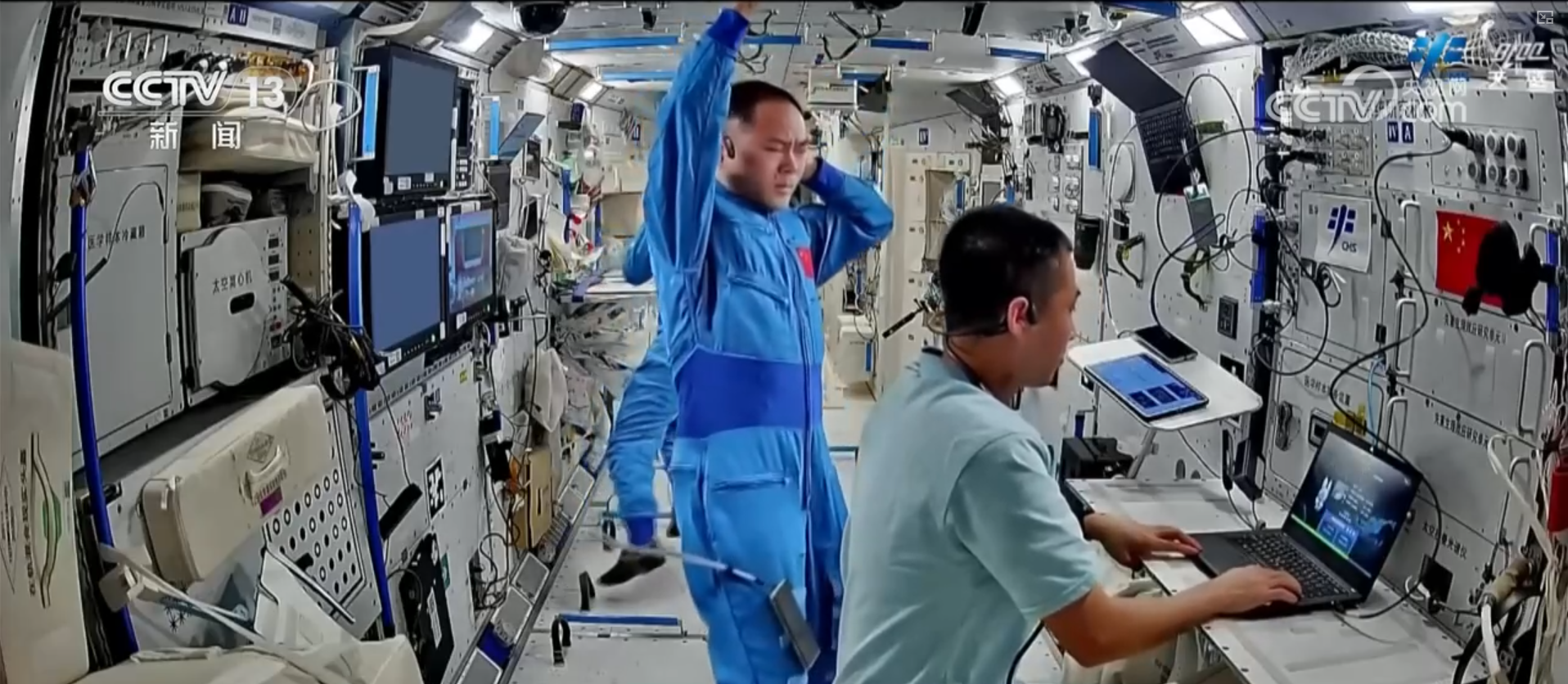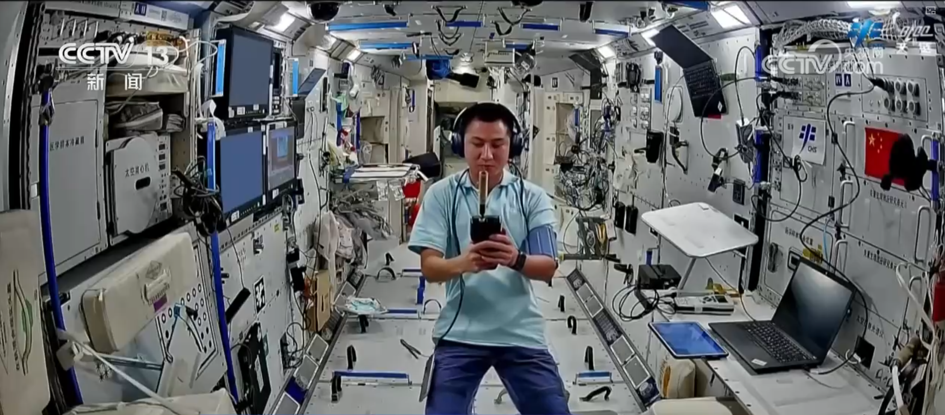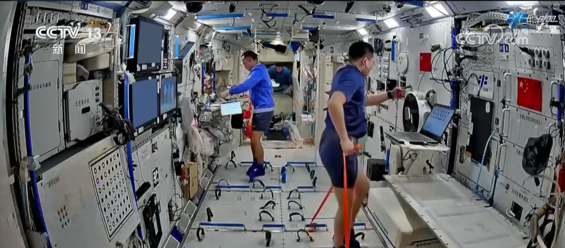 上周,三名航天員按計劃開展了多項醫(yī)學檢查,包括動態(tài)心電血壓、無創(chuàng)心功能檢查,腹部、血管、肌肉等超聲檢查,骨密度測量,聽力測試等項目,獲取相關數(shù)據(jù),密切掌握在軌健康狀況。同時,積極開展在軌鍛煉,對抗失重生理效應。