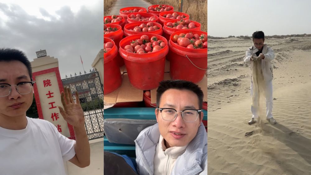 “喀柿紅”產(chǎn)地在新疆塔克拉瑪干沙漠邊緣的伽師縣。這是一種番茄新品種,是在沙漠大棚里培育,用當?shù)氐蟮柠}堿水澆灌。用陳鎮(zhèn)的話說,這小小的番茄里面都是科技,但沒有“狠活兒”,是完全綠色放心的好產(chǎn)品。