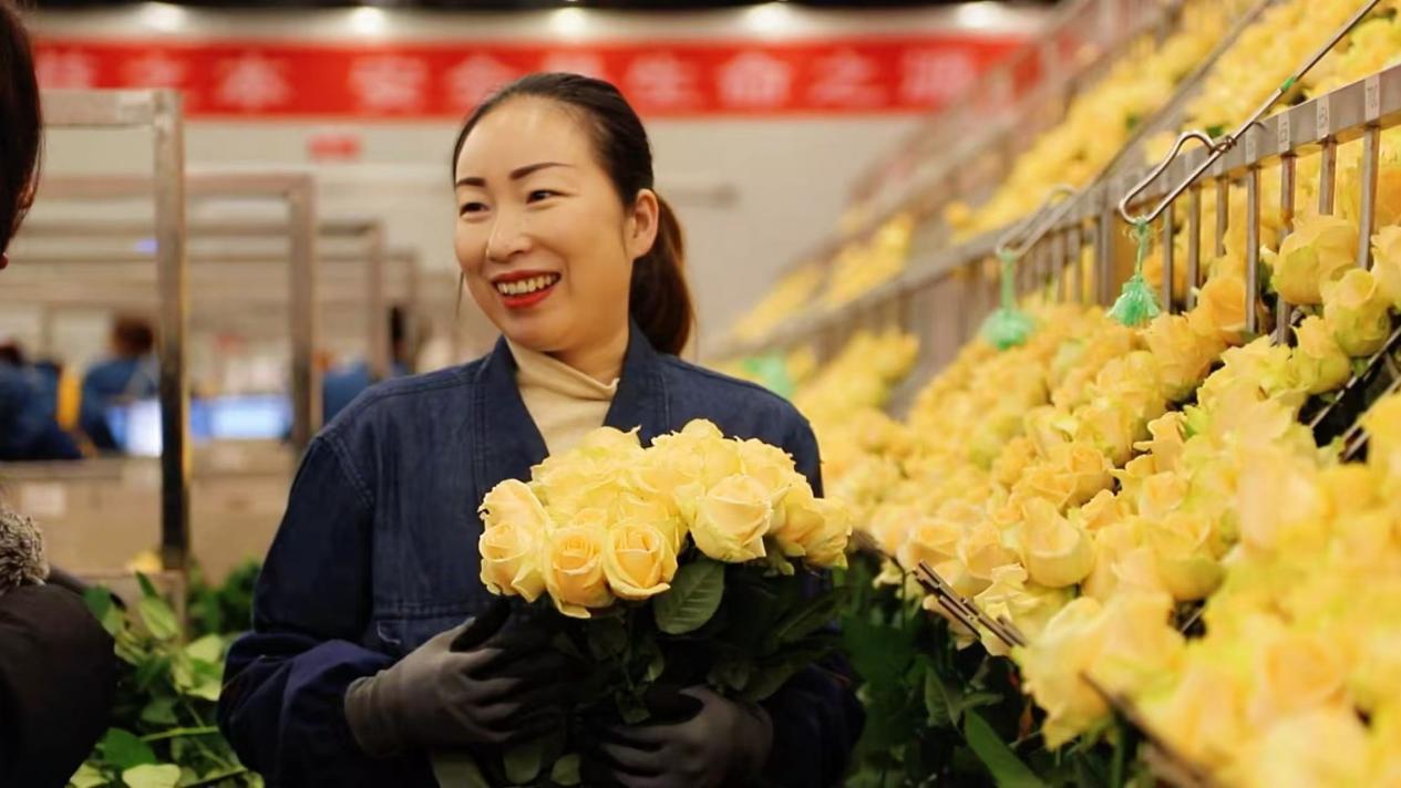 經(jīng)她們之手,高原玫瑰通過(guò)冷鏈物流,走向全國(guó)各地乃至海外。這讓張婷婷格外自豪:“我包的花有一天竟然能到國(guó)外。他們捧著它的時(shí)候,會(huì)是什么心情?會(huì)不會(huì)很開(kāi)心?”