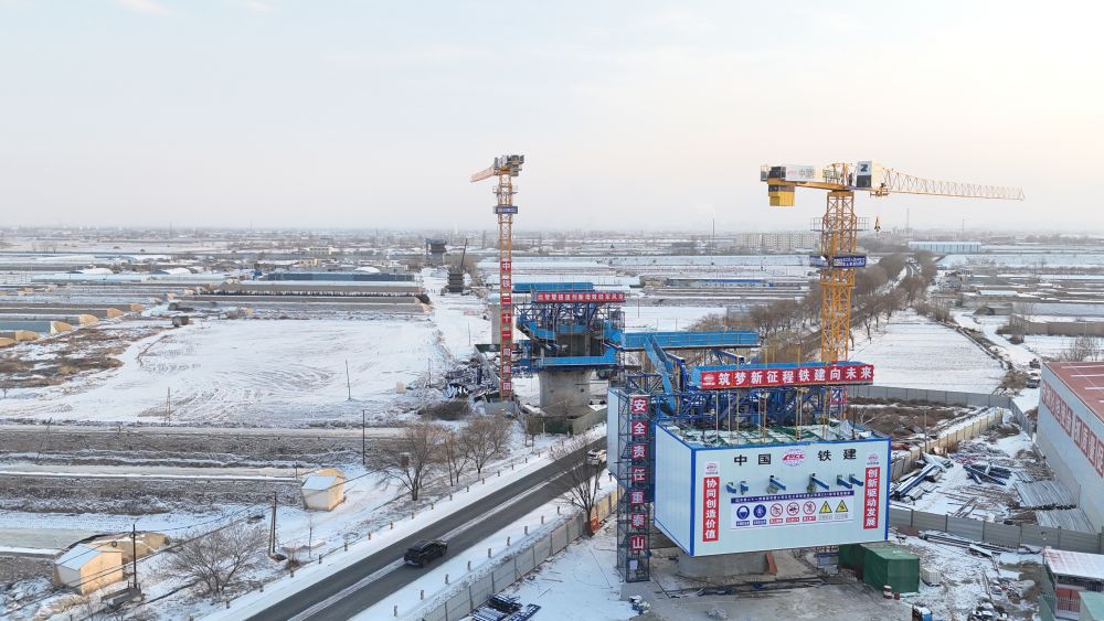 在中鐵二十一局集團有限公司所建項目處,機器轟鳴與焊花飛濺交織,鋼鐵巨臂緩緩運轉,巨大的橋墩向遠方延展開來。