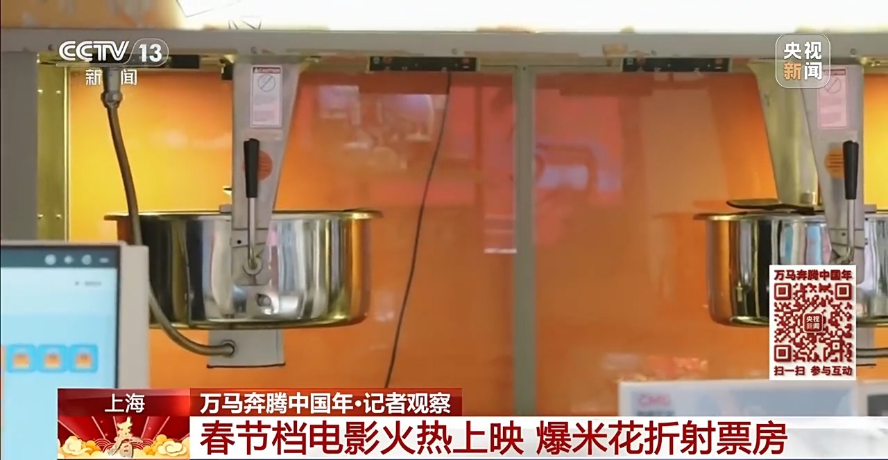 總臺(tái)記者 曾侃:我現(xiàn)在正在上海國(guó)際傳媒港CMG融媒影城,從明天早上9點(diǎn)多鐘開始,到晚上結(jié)束營(yíng)業(yè),所有影廳排得滿滿當(dāng)當(dāng)。明天最忙碌的除了工作人員,還有爆米花機(jī),一天得至少出爐20鍋。