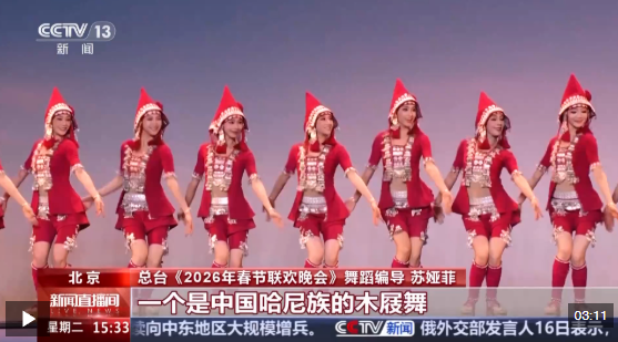 總臺(tái)《2026年春節(jié)聯(lián)歡晚會(huì)》舞蹈編導(dǎo) 蘇婭菲:這次的作品中有中國的兩個(gè)不同的舞種,一個(gè)是哈尼族的木屐舞,一個(gè)是中國傈僳族的阿尺木刮,它也是國家級非遺。還有兩支來自國外不同的團(tuán)隊(duì),一個(gè)來自匈牙利,表演的是匈牙利的萊蓋涅什,是他們的傳統(tǒng)民族舞蹈,一個(gè)是西班牙的一支舞蹈團(tuán),表演的就是弗拉門戈。