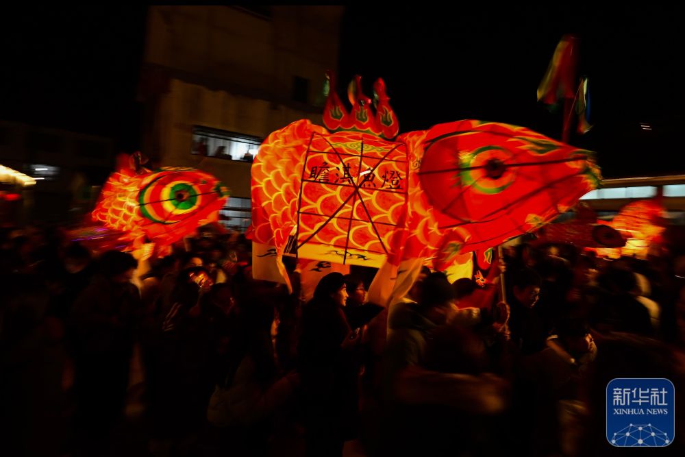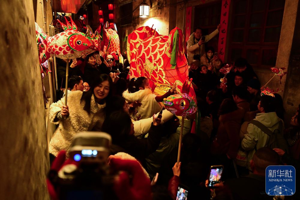 2月7日,瞻淇村魚燈隊在村中表演。