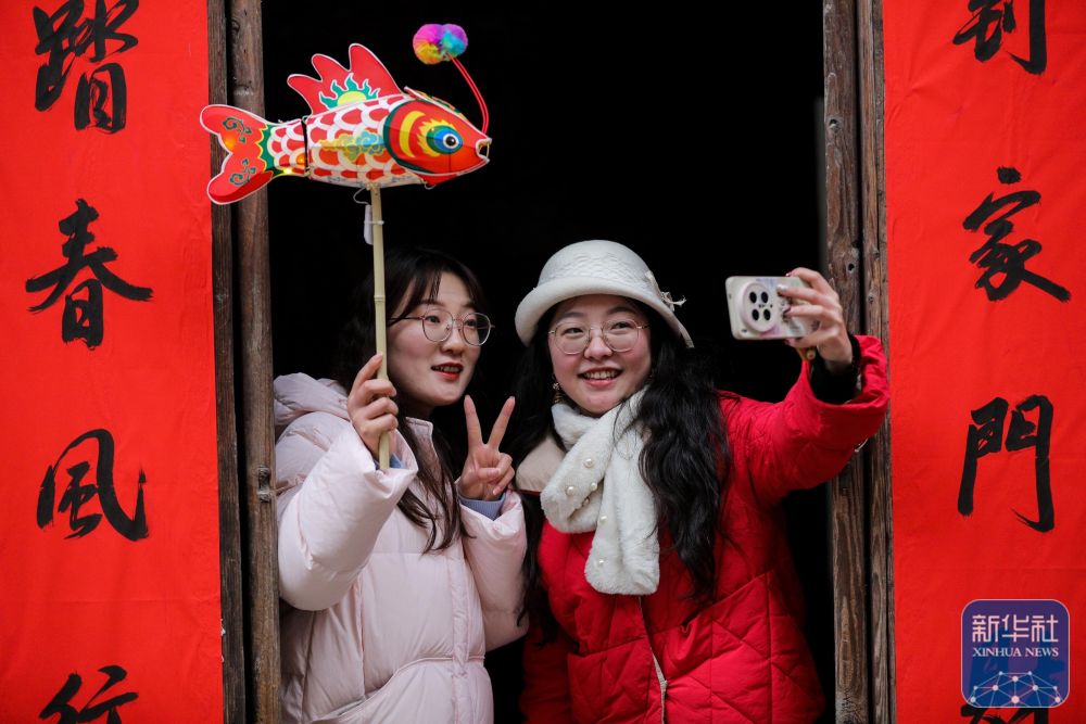 2月7日,游客在瞻淇村游玩。