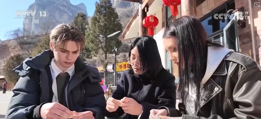 此外,外國游客還興致勃勃跟著村民一起搟餃子皮、學(xué)包餃子,親手體驗這一充滿團(tuán)圓寓意的傳統(tǒng)習(xí)俗。