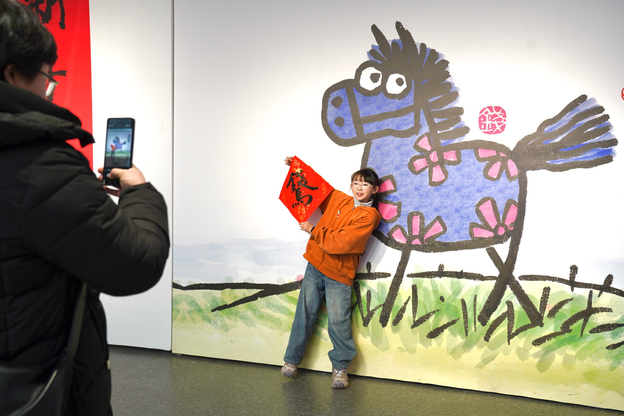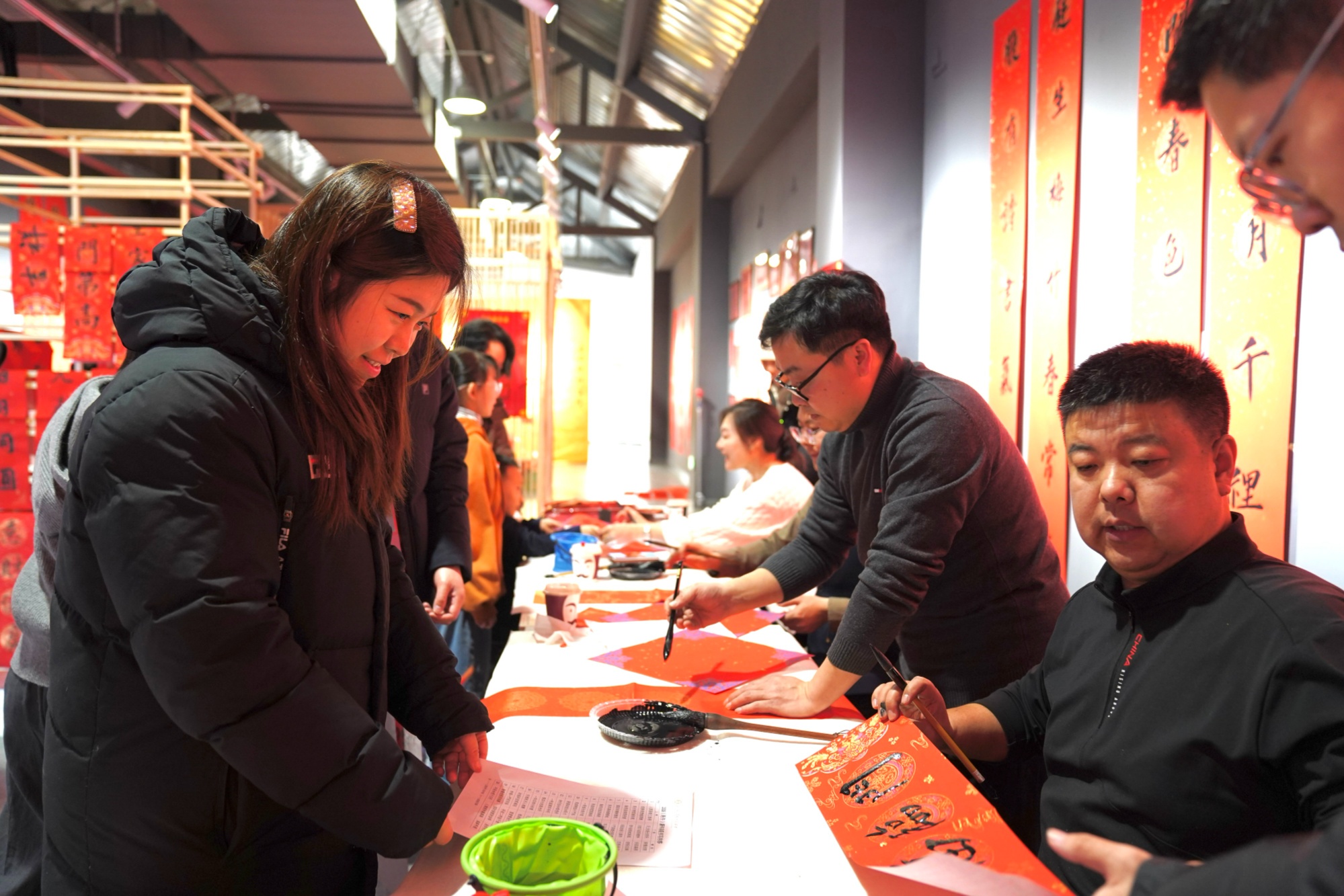 空·美術(shù)館里墨香四溢,長春市青年書法家協(xié)會副主席郭洪日等四位書法家現(xiàn)場揮毫,“馬到成功添錦繡”“喜盈大冬啟新程”等春聯(lián)躍然紙上,將新春祝福與大冬會期盼融入筆墨,市民們手捧墨香春聯(lián),爭相與書法家、喜慶春聯(lián)合影,一張張笑臉在鏡頭中綻放。累計百余份春聯(lián)、福字免費(fèi)發(fā)放,每一份都成了市民打卡收藏的“新春文化禮”。
