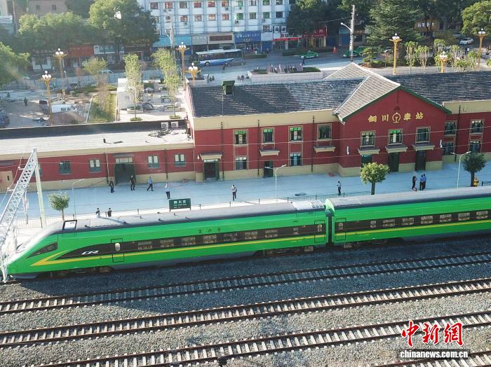 圖為綠巨人動(dòng)車(chē)組駛進(jìn)銅川東站。(資料圖)趙宏亮 攝