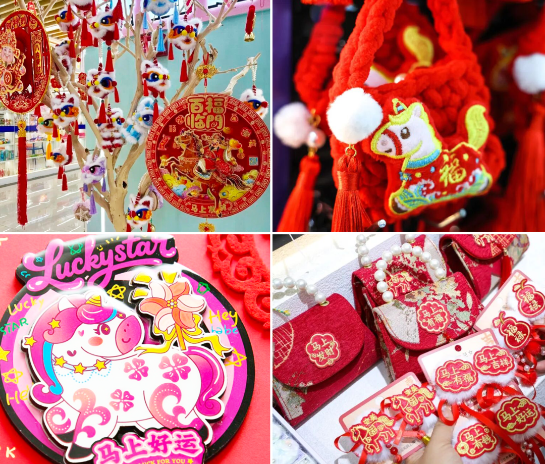 義烏國際商貿城年味兒滿滿,年畫、燈籠、馬年玩偶,還有各式各樣的創(chuàng)意潮玩年貨,鋪天蓋地的“中國紅”,熱熱鬧鬧。
