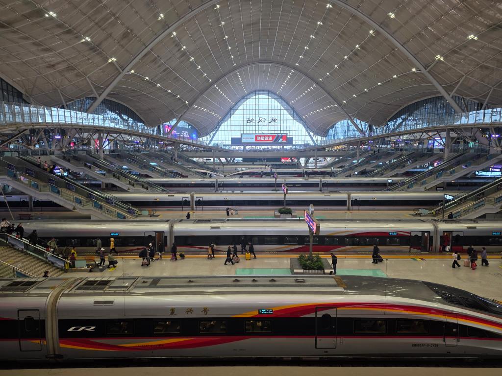 車窗外,華北平原褪去了冬日蕭索,廣袤大地在暖陽下延展,正靜待春耕。復(fù)興號(hào)高鐵掠過中原腹地,車廂顯示屏上穩(wěn)定顯示著時(shí)速350公里的數(shù)字。