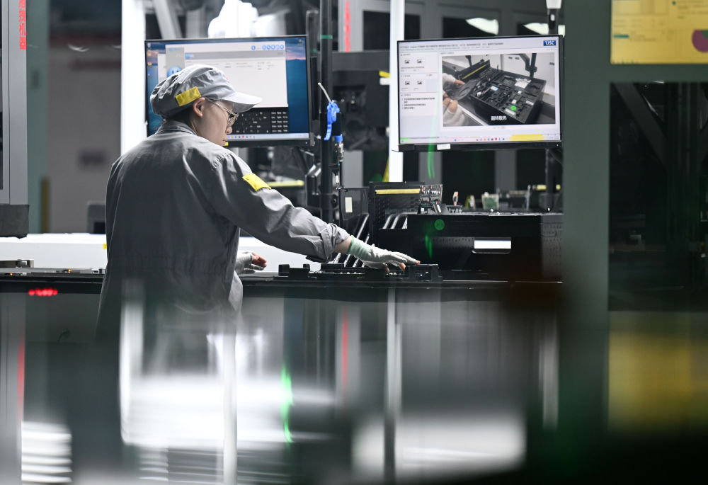 工作人員在聯(lián)想天津零碳智造工廠筆記本生產(chǎn)線(xiàn)進(jìn)行作業(yè)。新華社記者趙子碩 攝
