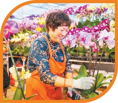 山東省青島市枯桃花卉交易中心,花匠在整理鮮花。