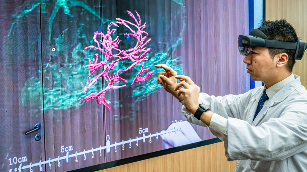 2025年3月26日,科研人員通過微米級(jí)腦機(jī)接口混合現(xiàn)實(shí),精準(zhǔn)呈現(xiàn)腦機(jī)接口與大鼠大腦主要血管和腦組織的空間位置關(guān)系。新華社圖