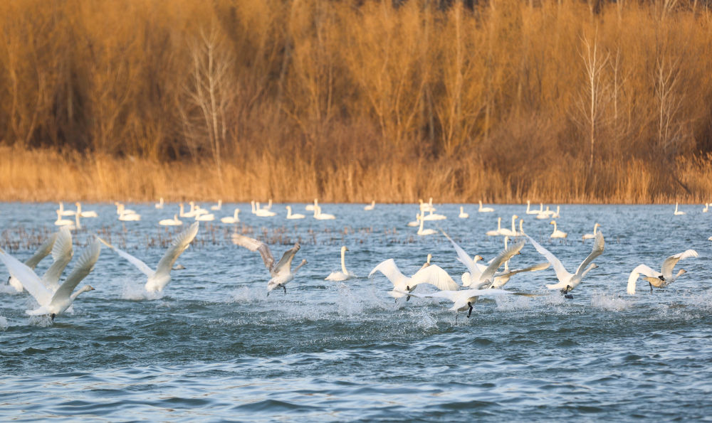 每年11月下旬至次年3月,大天鵝都會(huì)到位于黃河中游的三門峽黃河濕地越冬。據(jù)三門峽黃河天鵝湖濕地保護(hù)中心統(tǒng)計(jì),天鵝數(shù)量從20世紀(jì)90年代的幾十只,增至如今的1.6萬(wàn)余只。