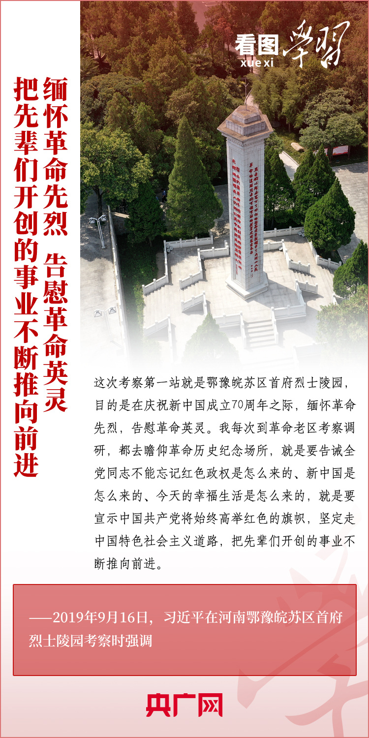 緬懷革命前輩,告慰先烈英靈。黨的十八大以來,習近平總書記多次在重大活動、赴地方調研時,或深情追憶革命前輩、英雄烈士,或向革命紀念場館禮敬鮮花、關心看望英烈親屬。總書記勉勵大家要繼承革命先烈遺志,把他們流血犧牲打下的紅色江山守護好、建設好,以實現中華民族偉大復興來告慰革命前輩和先烈。