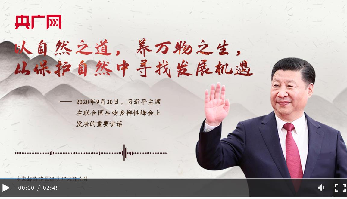 這段話(huà)出自2020年9月30日習(xí)近平主席在聯(lián)合國(guó)生物多樣性峰會(huì)上發(fā)表的重要講話(huà)。