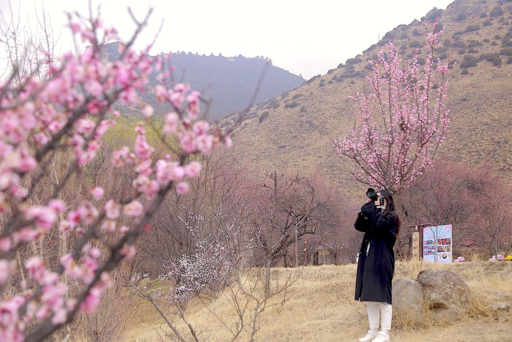 全國(guó)各地游客慕名前來(lái)觀賞。廣東省茂名市的張曉夫婦,開(kāi)車(chē)自駕3000多公里,只為到此一睹桃花盛景。