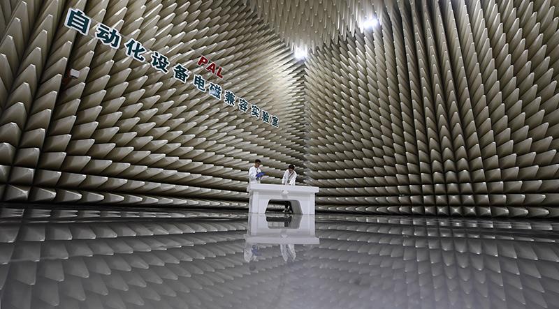△2023年7月7日,在南瑞集團有限公司自動化設(shè)備電磁兼容實驗室,科研人員在進行輻射發(fā)射實驗準備工作。