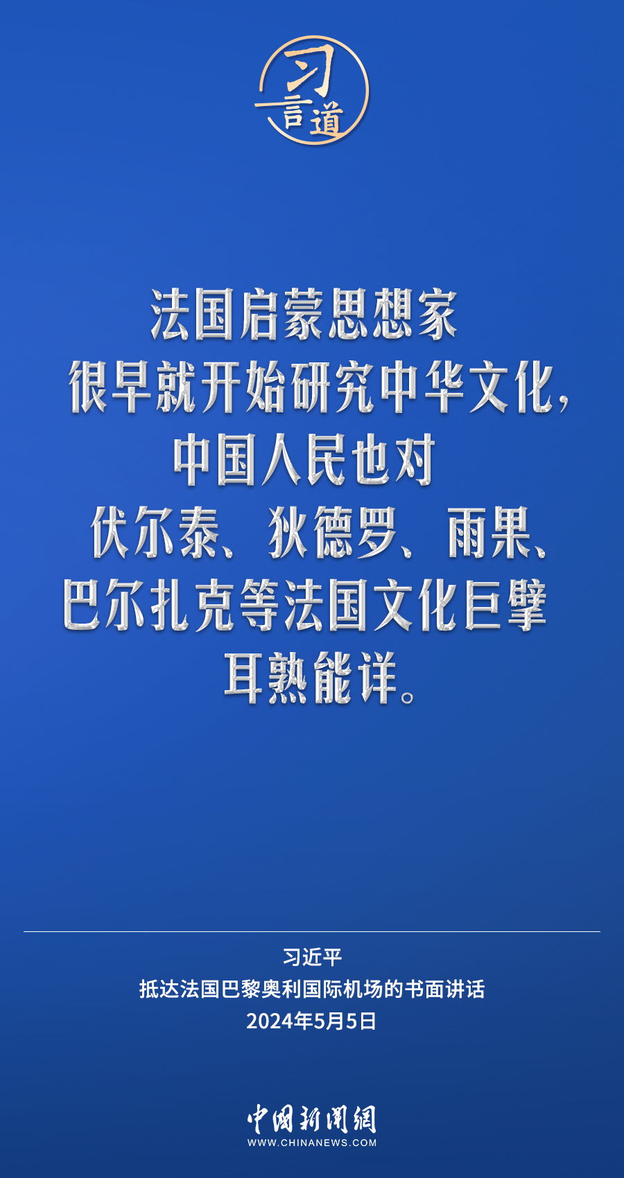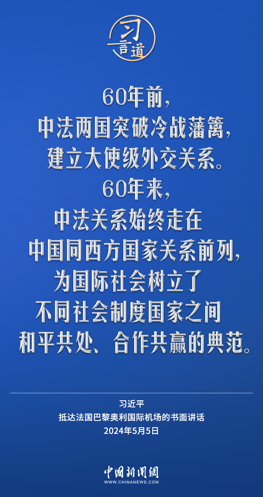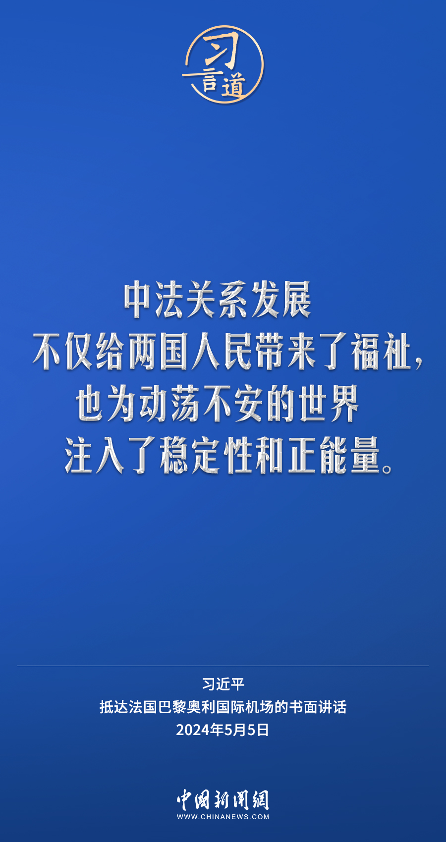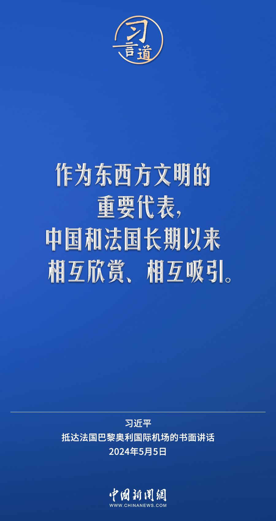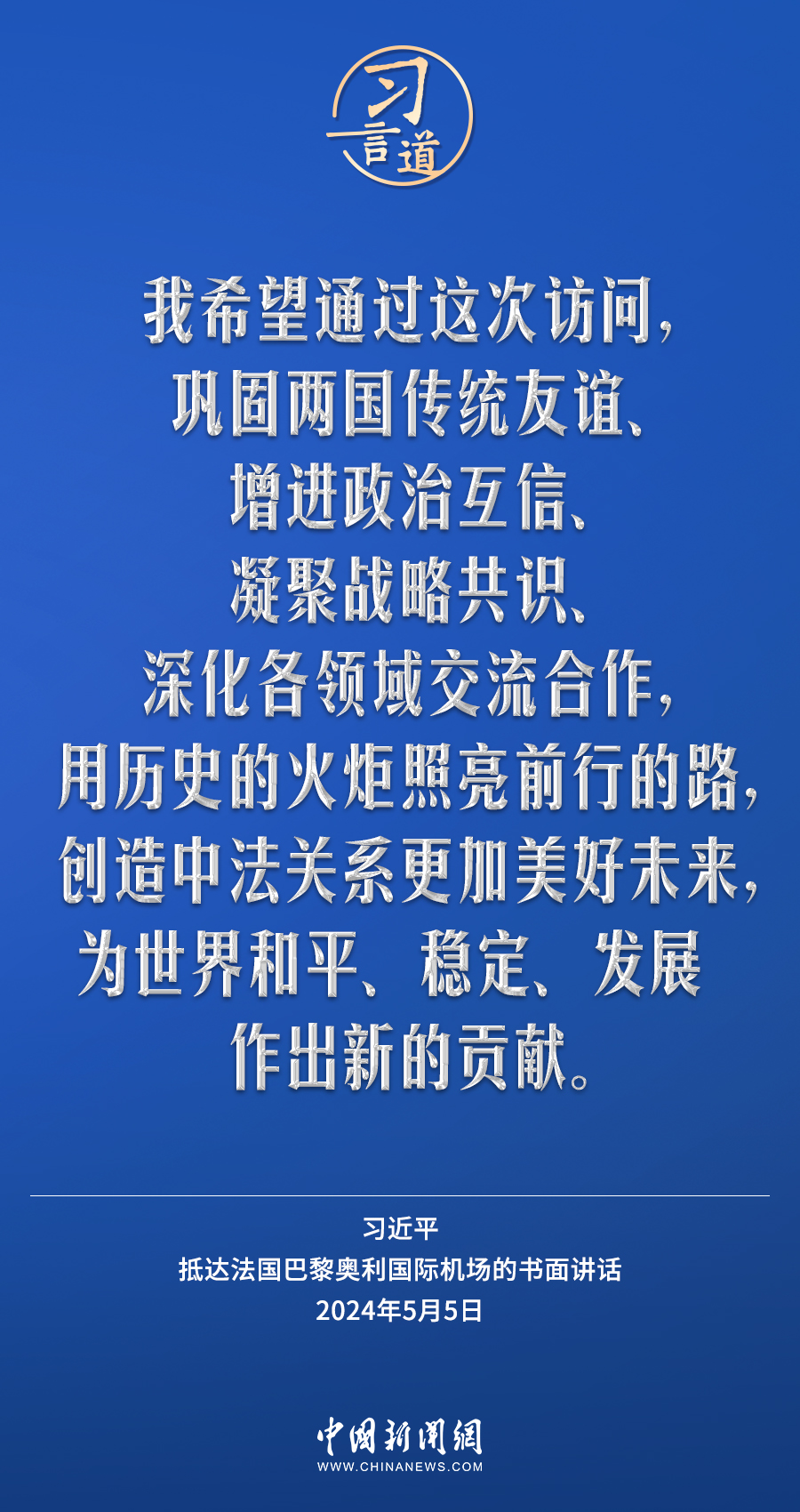 當(dāng)?shù)貢r(shí)間5月5日下午,國家主席習(xí)近平抵達(dá)巴黎,開始對(duì)法國進(jìn)行國事訪問。在抵達(dá)法國巴黎奧利國際機(jī)場(chǎng)的書面講話中,習(xí)近平指出——