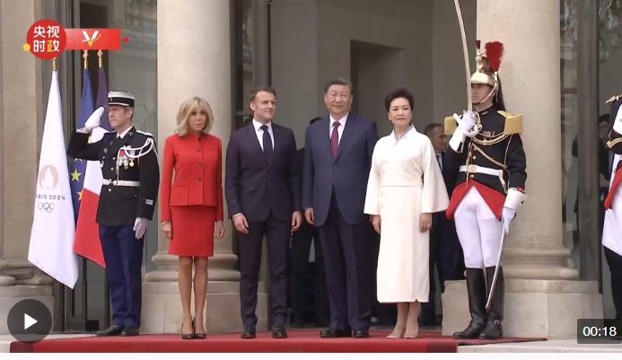 當地時間5月6日下午,國家主席習近平和夫人彭麗媛乘車抵達愛麗舍宮。