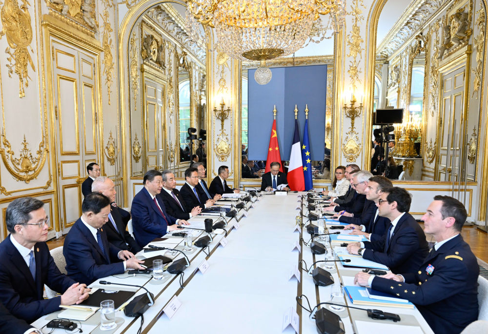 當(dāng)?shù)貢r間5月6日下午,國家主席習(xí)近平在巴黎愛麗舍宮同法國總統(tǒng)馬克龍舉行會談。新華社記者 殷博古 攝
