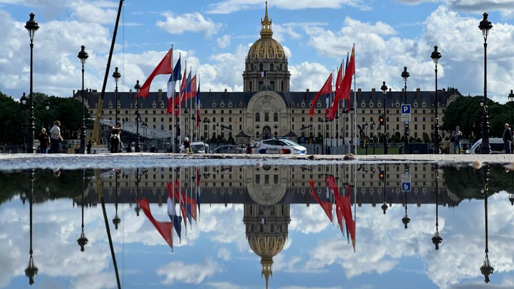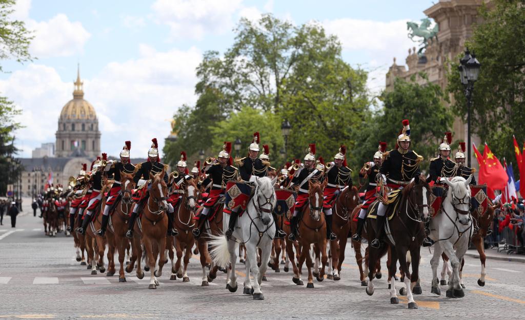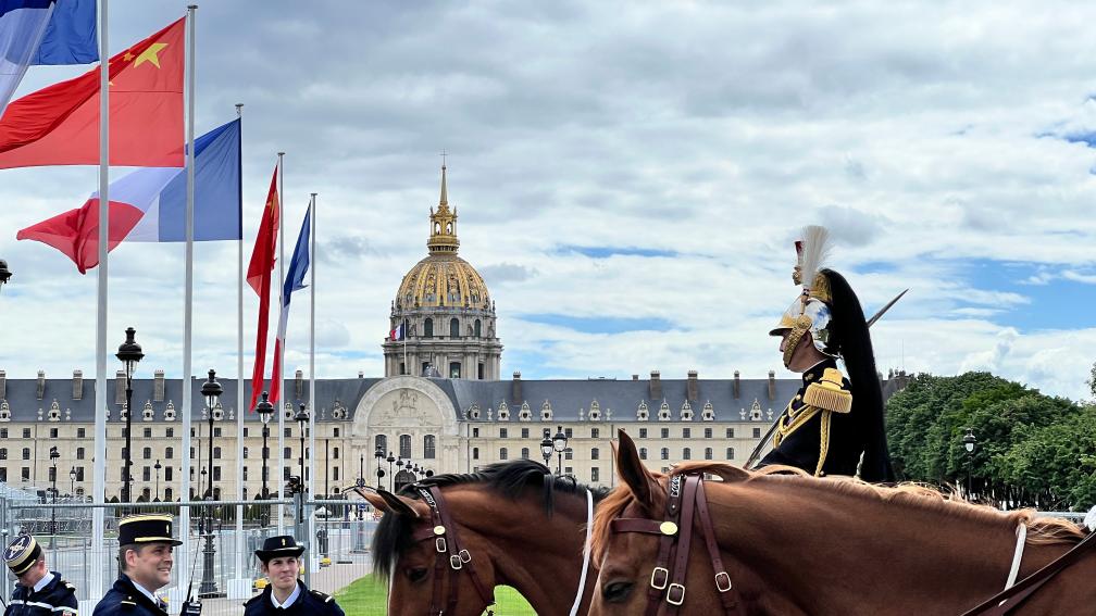 五月的巴黎,風和景明。塞納河畔,榮軍院金色穹頂熠熠生輝,五星紅旗和藍白紅三色旗迎風飄揚。