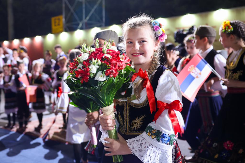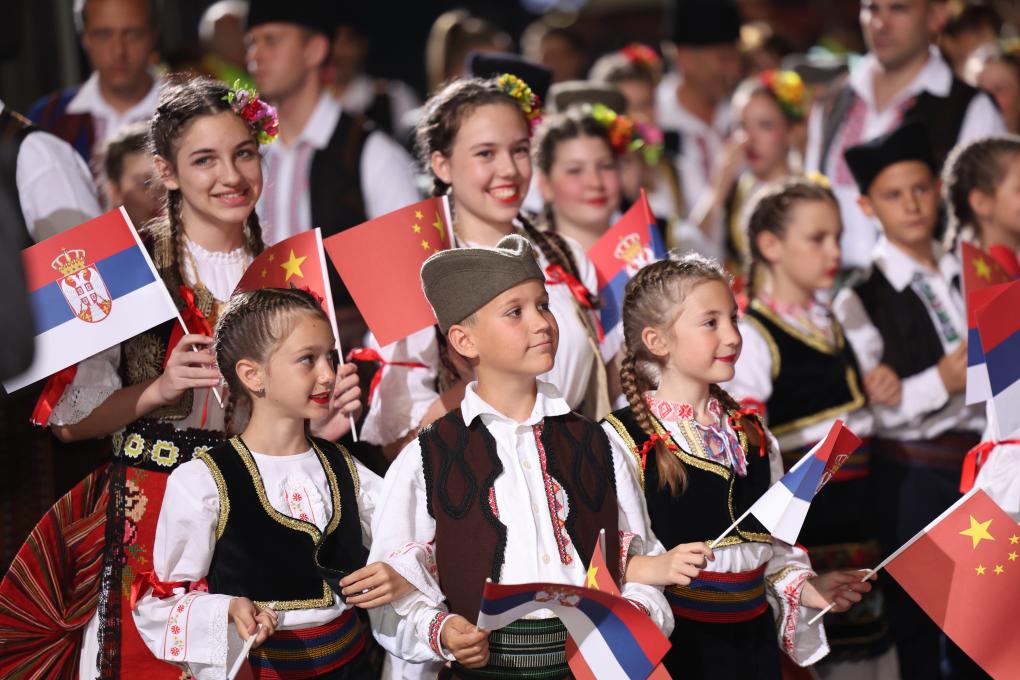 武契奇在機(jī)場為習(xí)近平舉行獨(dú)具特色的迎賓儀式。塞爾維亞少年兒童向習(xí)近平和彭麗媛獻(xiàn)花,揮舞中塞兩國國旗,身著民族盛裝的塞爾維亞民眾載歌載舞熱烈歡迎。