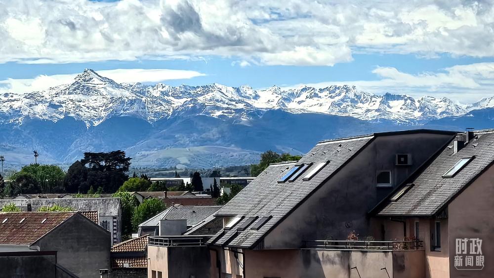 從塔布市區(qū)遠(yuǎn)眺比利牛斯山。(總臺央視記者楊波拍攝)