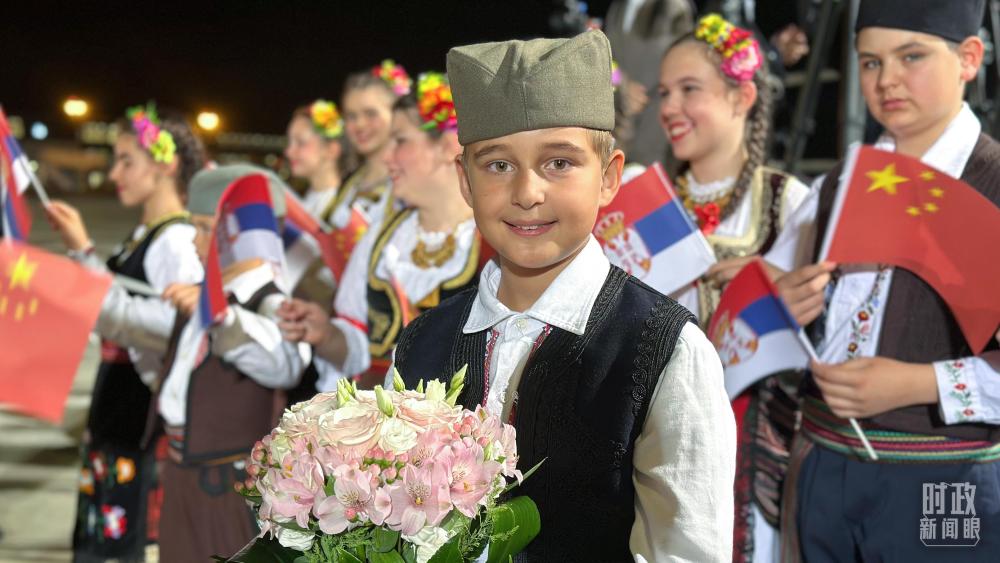 機(jī)場迎接習(xí)主席的塞爾維亞少年。(總臺央視記者范一鳴拍攝)
