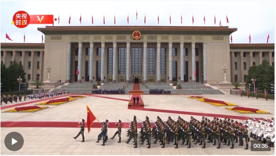 5月16日上午,國家主席習(xí)近平在北京人民大會堂東門外廣場舉行儀式,歡迎俄羅斯總統(tǒng)普京訪華。