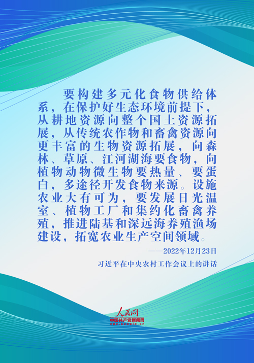 黨的十八大以來,從2015年中央農(nóng)村工作會議提出“要樹立大農(nóng)業(yè)、大食物觀念”,到黨的二十大報告提出“樹立大食物觀,發(fā)展設(shè)施農(nóng)業(yè),構(gòu)建多元化食物供給體系”,再到2024年中央一號文件提出“樹立大農(nóng)業(yè)觀、大食物觀,多渠道拓展食物來源,探索構(gòu)建大食物監(jiān)測統(tǒng)計體系”,以習(xí)近平同志為核心的黨中央對大食物觀的闡釋不斷豐富和發(fā)展。