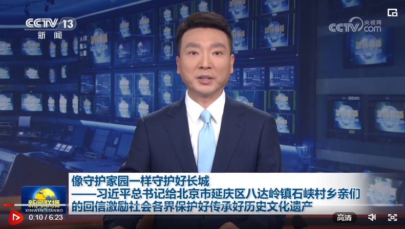 習(xí)近平總書記5月14日給北京市延慶區(qū)八達(dá)嶺鎮(zhèn)石峽村的鄉(xiāng)親們回信,強(qiáng)調(diào),長(zhǎng)城是中華民族的代表性符號(hào)和中華文明的重要象征,凝聚著中華民族自強(qiáng)不息的奮斗精神和眾志成城、堅(jiān)韌不屈的愛國情懷。勉勵(lì)鄉(xiāng)親們,帶動(dòng)更多人了解長(zhǎng)城、保護(hù)長(zhǎng)城,把祖先留下的這份珍貴財(cái)富世世代代傳下去。習(xí)近平總書記的回信在社會(huì)各界引發(fā)熱烈反響。