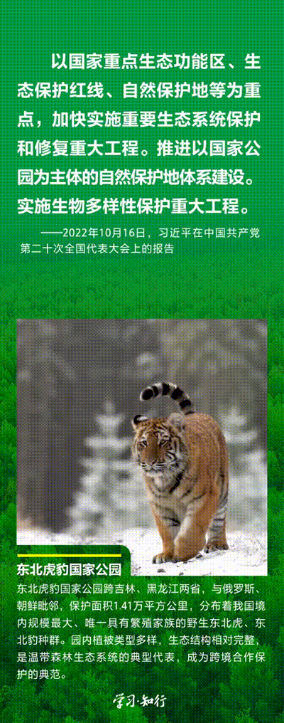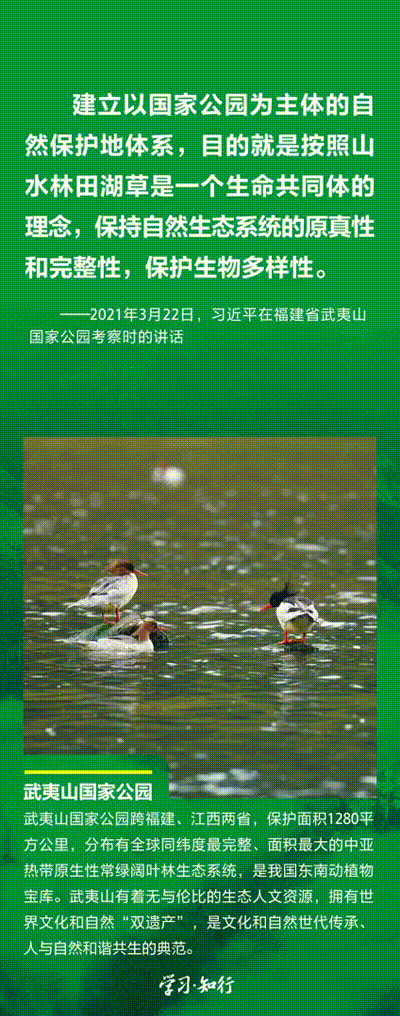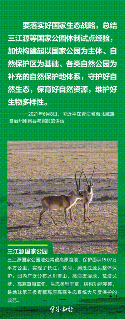 “生物多樣性使地球充滿(mǎn)生機(jī),也是人類(lèi)生存和發(fā)展的基礎(chǔ)。”推進(jìn)以國(guó)家公園為主體的自然保護(hù)地體系建設(shè),是習(xí)近平總書(shū)記作出的重要部署。三江源、大熊貓、東北虎豹、海南熱帶雨林、武夷山等首批國(guó)家公園正式設(shè)立以來(lái),生態(tài)功能持續(xù)向好,對(duì)保護(hù)生物多樣性、推進(jìn)人與自然和諧共生的現(xiàn)代化具有重要意義。