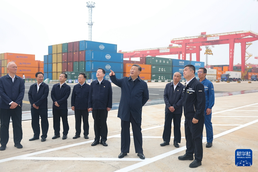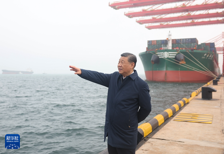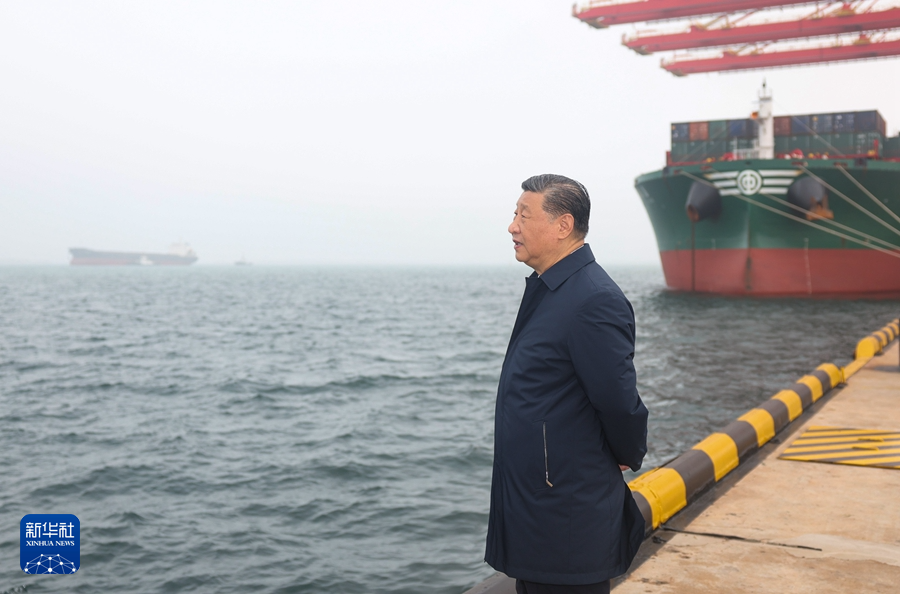 5月22日至24日,中共中央總書記、國家主席、中央軍委主席習近平在山東考察。這是22日下午,習近平在日照港考察。新華社記者 鞠鵬 攝