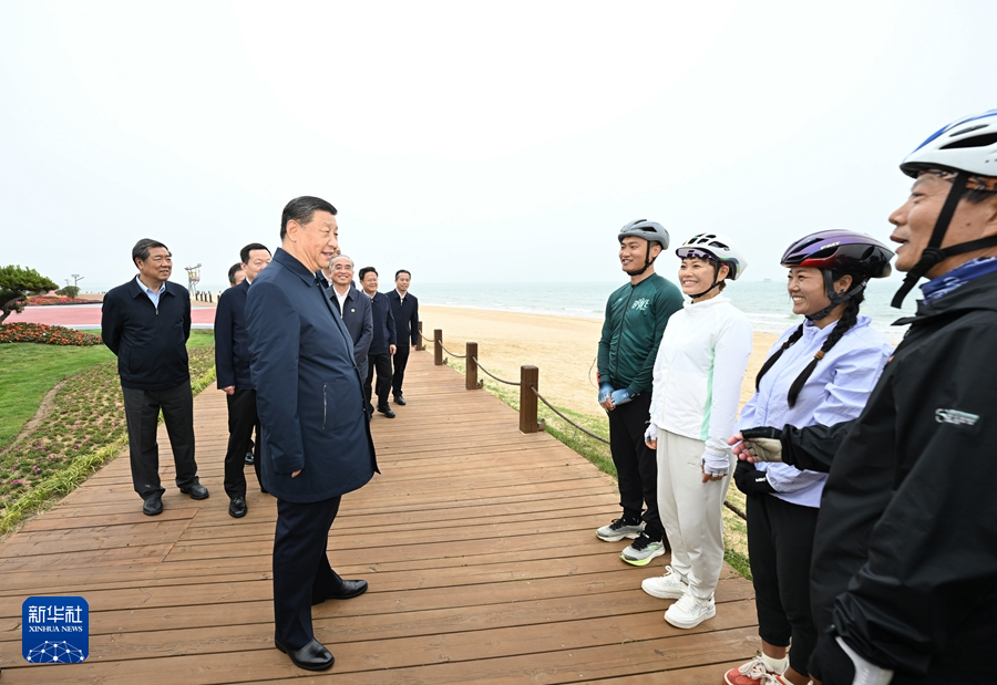 5月22日至24日,中共中央總書記、國家主席、中央軍委主席習近平在山東考察。這是22日下午,習近平在日照市陽光海岸綠道考察。新華社記者 鞠鵬 攝