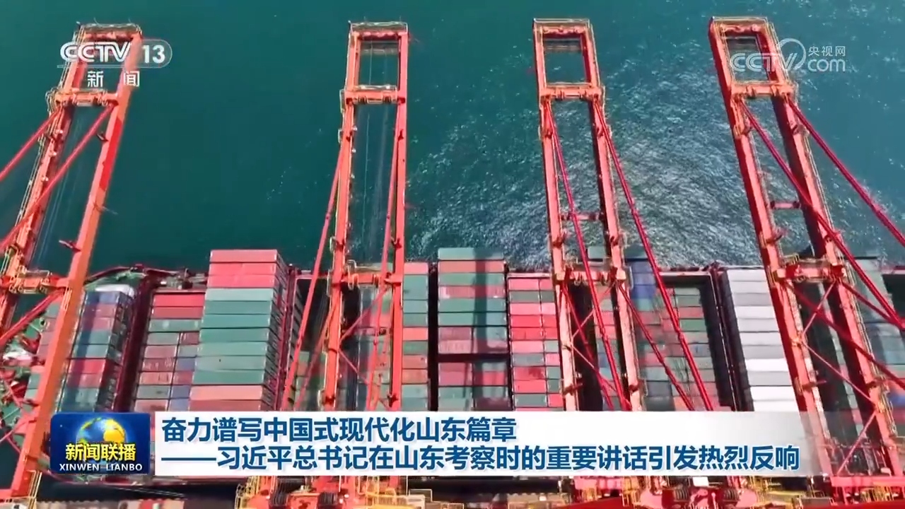 黃海之濱,山東日照港全自動(dòng)化集裝箱碼頭上無(wú)人駕駛集裝箱卡車往來(lái)穿梭。習(xí)近平總書記首先來(lái)到這里考察,他指出,日照港近年來(lái)推進(jìn)科技創(chuàng)新,將傳統(tǒng)港口改造升級(jí)為現(xiàn)代化港口,不僅貨物吞吐量躋身全國(guó)前列,還積累了通過(guò)傳統(tǒng)產(chǎn)業(yè)改造升級(jí)發(fā)展新質(zhì)生產(chǎn)力的經(jīng)驗(yàn),值得肯定。