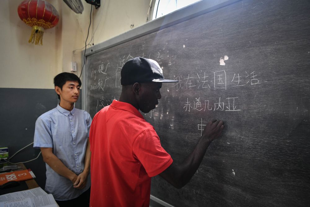 5月17日,在赤道幾內(nèi)亞國立大學,當?shù)貙W生在孔子學院上中文課。