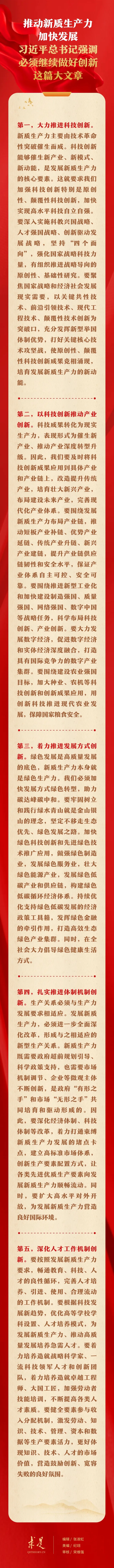 6月1日出版的第11期《求是》雜志刊發(fā)習(xí)近平總書記重要文章《發(fā)展新質(zhì)生產(chǎn)力是推動(dòng)高質(zhì)量發(fā)展的內(nèi)在要求和重要著力點(diǎn)》。在這篇重要文章中,習(xí)近平總書記從科技創(chuàng)新、產(chǎn)業(yè)創(chuàng)新、發(fā)展方式創(chuàng)新、體制機(jī)制創(chuàng)新、人才工作機(jī)制創(chuàng)新等五個(gè)方面,對(duì)推動(dòng)新質(zhì)生產(chǎn)力加快發(fā)展提出明確要求。