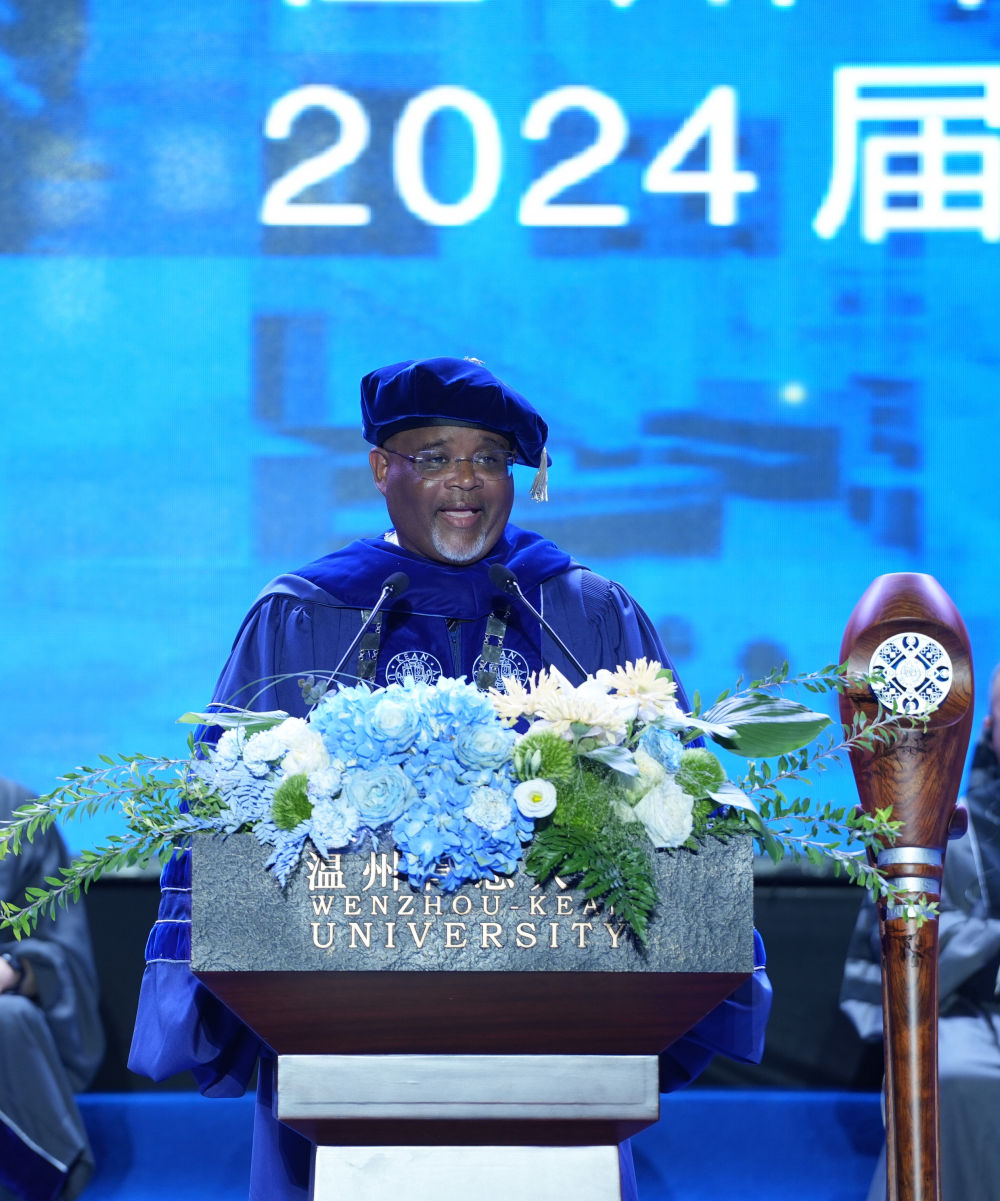 6月7日,美國肯恩大學(xué)校長拉蒙·雷波列特在溫州肯恩大學(xué)畢業(yè)典禮上致辭。(受訪者供圖)