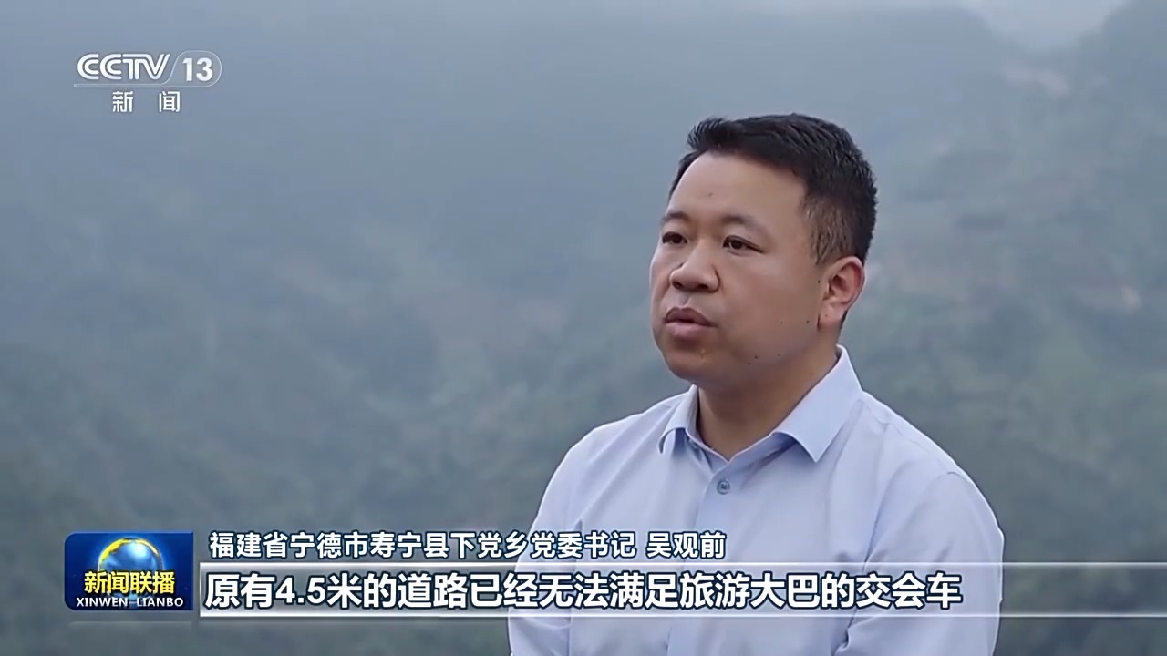 福建省寧德市壽寧縣下黨鄉(xiāng)黨委書(shū)記 吳觀(guān)前:原有4.5米的道路已經(jīng)無(wú)法滿(mǎn)足旅游大巴的交會(huì)車(chē),農(nóng)村道路單改雙,交通更便捷了,四通八達(dá)的農(nóng)村公路是我們的致富路、振興路。