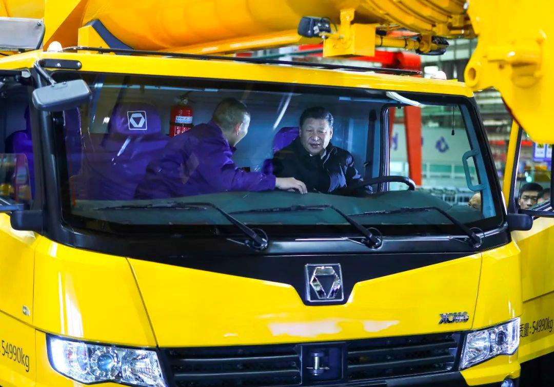 2017年12月12日,習(xí)近平總書記在江蘇徐州徐工集團(tuán)坐進(jìn)剛下線的XCA220型全地面起重機(jī)駕駛室,向技術(shù)人員詳細(xì)詢問起重機(jī)的性能、產(chǎn)量、價格等。