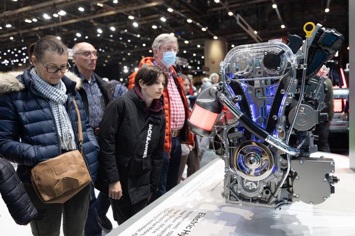 觀眾在瑞士舉行的2024年日內(nèi)瓦國際車展上參觀比亞迪新款發(fā)動機(jī)。