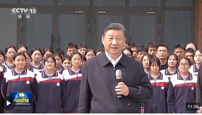 在高一(1)班教室,總書記說,要把鑄牢中華民族共同體意識作為學(xué)校思政課的一個重點(diǎn),講好中國共產(chǎn)黨和中國特色社會主義的故事,講好新時代以中國式現(xiàn)代化全面推進(jìn)強(qiáng)國建設(shè)、民族復(fù)興偉業(yè)的故事,講好中華民族共同體和民族團(tuán)結(jié)進(jìn)步的故事,把中華民族共同體意識從小就植入孩子們的心靈。