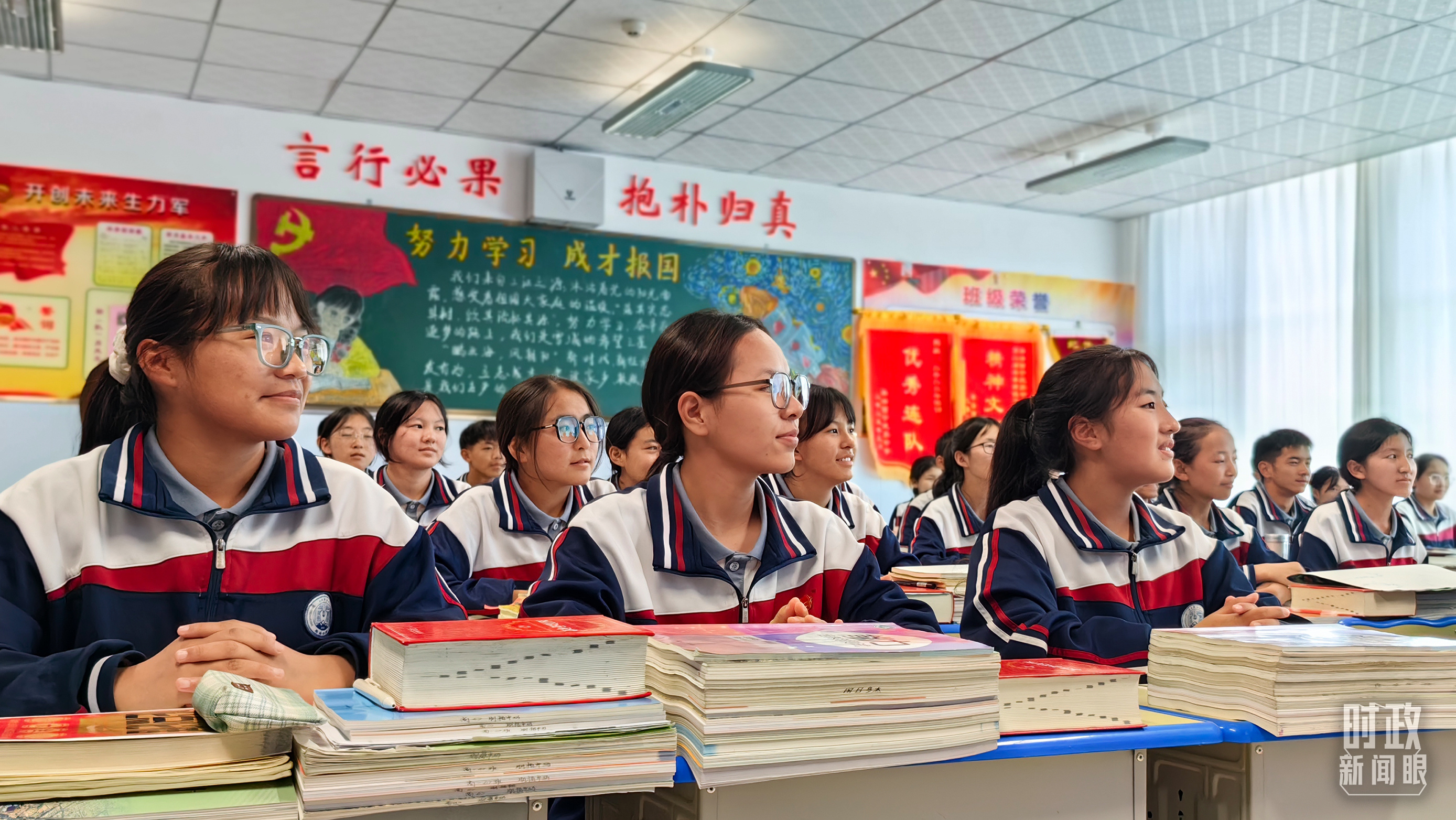 果洛西寧民族中學(xué)高一(1)班的“新時代、新家鄉(xiāng)”主題思政課。(總臺央視記者許永松、國廣記者李晉拍攝)