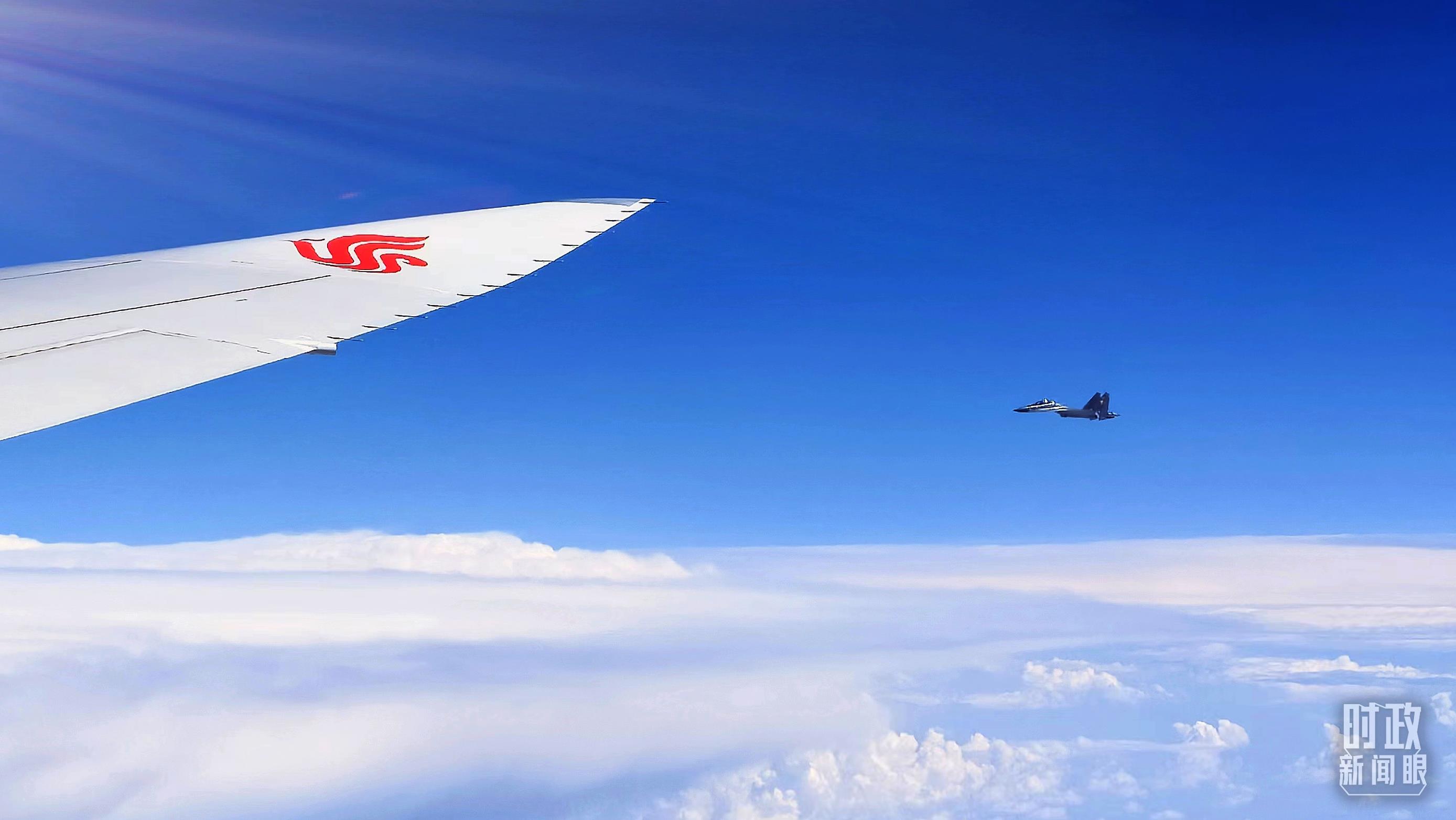護(hù)航的哈薩克斯坦空軍戰(zhàn)機(jī)。(總臺央視記者李錚拍攝)