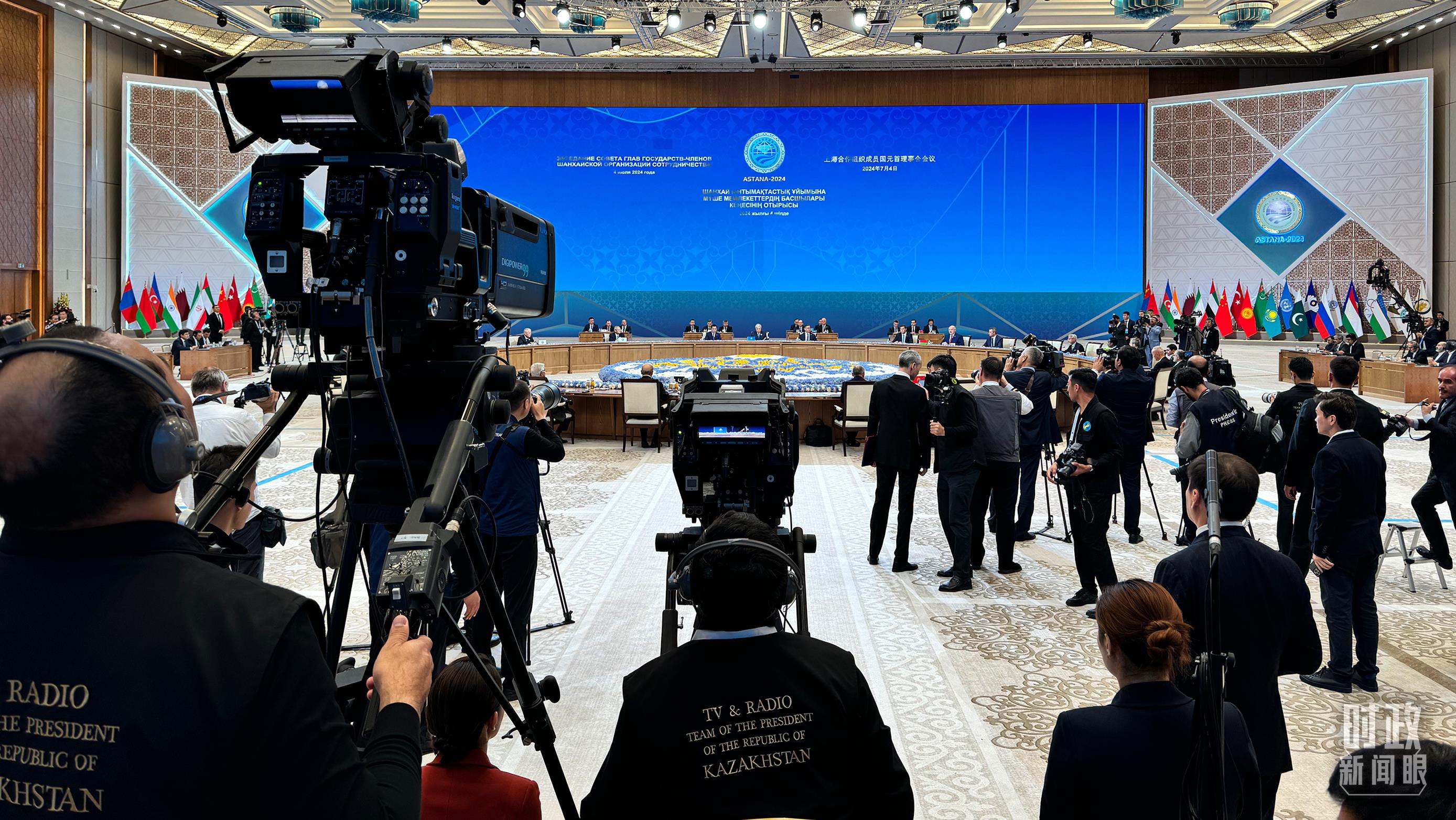 當(dāng)天下午,“上海合作組織+”阿斯塔納峰會(huì)在這里舉行,這是會(huì)議開(kāi)始前。(總臺(tái)央視記者石丞拍攝)