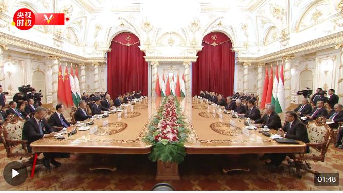 習(xí)近平指出,尊敬的拉赫蒙總統(tǒng)先生,我的老朋友,非常高興同你再次會(huì)晤。時(shí)隔5年再次到訪貴國,我看到了一個(gè)更加欣欣向榮的塔吉克斯坦。作為友好鄰邦和全面戰(zhàn)略伙伴,我們?yōu)榇烁械接芍愿吲d。