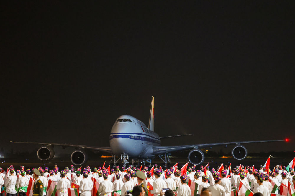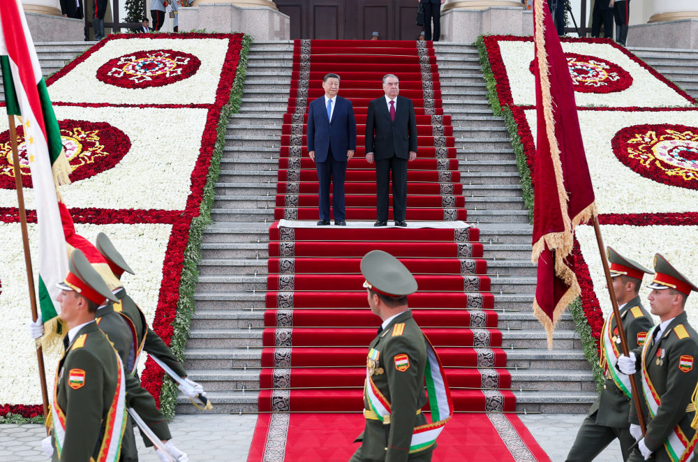 專機抵達(dá)杜尚別國際機場時,拉赫蒙率高級官員熱情迎接。塔吉克斯坦兒童向習(xí)近平獻(xiàn)花,用中、塔文歡迎習(xí)近平主席到訪。兩國元首在機場共同欣賞青年們表演的中塔歌舞。