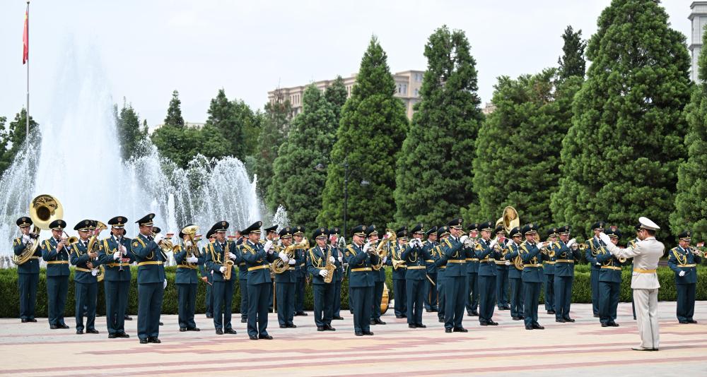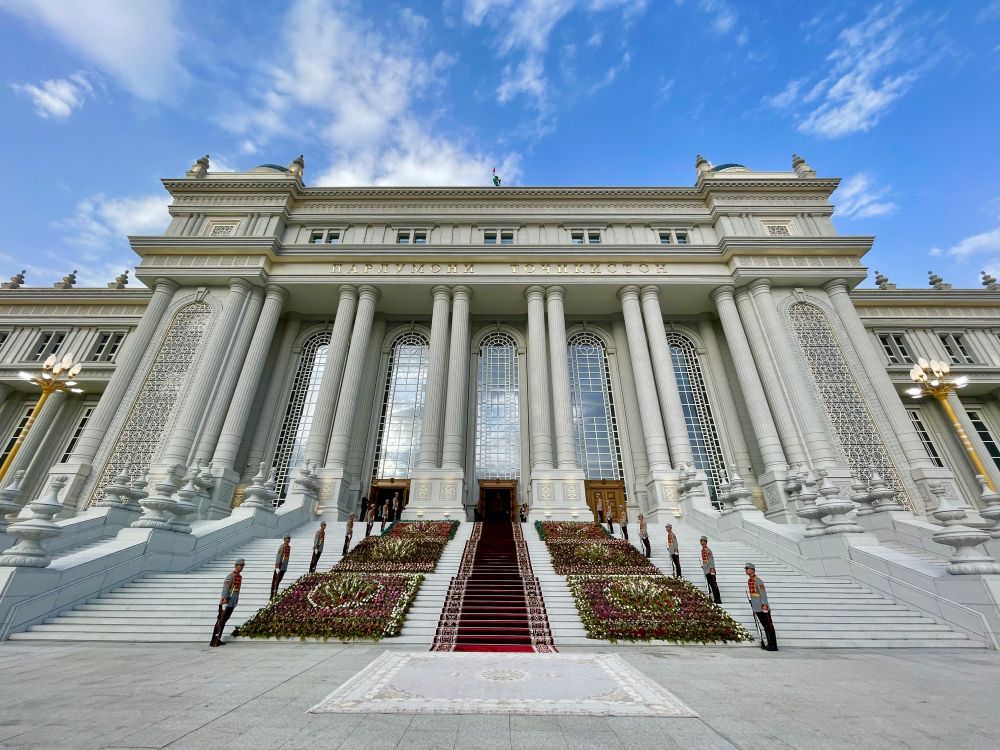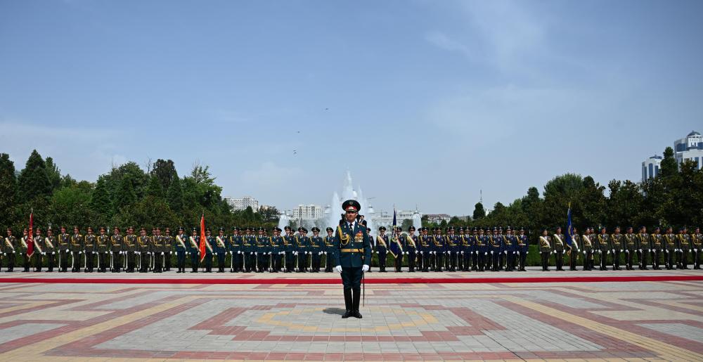 當(dāng)?shù)貢r間7月5日,拉赫蒙總統(tǒng)在總統(tǒng)府前廣場為習(xí)近平主席舉行盛大隆重的歡迎儀式。