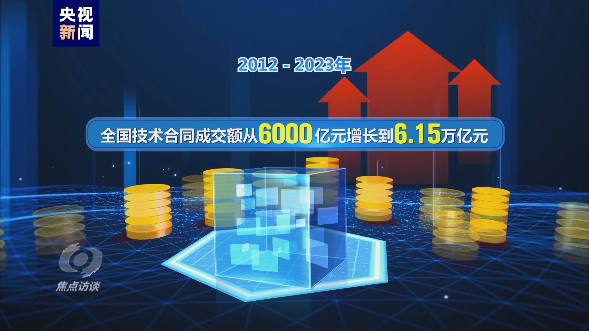黨的十八大以來,我國(guó)形成了一批支持科技成果轉(zhuǎn)化的鏈條和平臺(tái)。通過修訂《促進(jìn)科技成果轉(zhuǎn)化法》等法律法規(guī),將科技成果轉(zhuǎn)化中的使用權(quán)、處置權(quán)、收益權(quán)等,盡可能地賦予科技創(chuàng)新的主體和人員。2012—2023年,全國(guó)技術(shù)合同成交額從6000億元增長(zhǎng)到6.15萬億元。